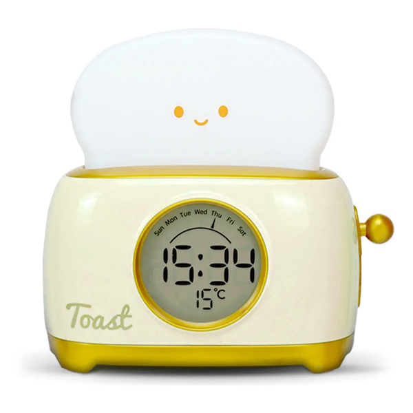LÁMPARA DE NOCHE LED TOSTADORA DE PAN LUZ CÁLIDA RECARGABLE CON RELOJ DIGITAL